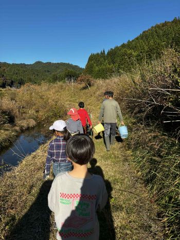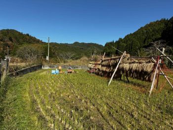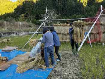 この日の活動は農地での脱穀作業と果樹園予定地での植樹でした。参加されていた4家族とスタッフで和やかな雰囲気の中、作業が進みます。