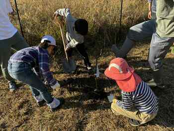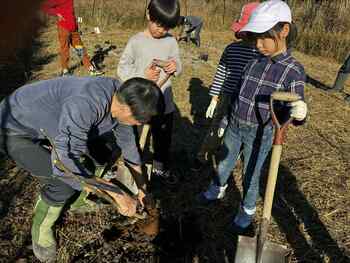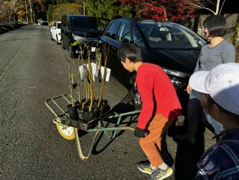 植樹作業は子どもたちが大活躍。あっという間に9本植え終わりました。
