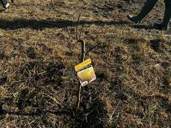 一区画の雑草を刈り取り、参加者でイチジクを植えます。
