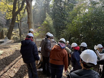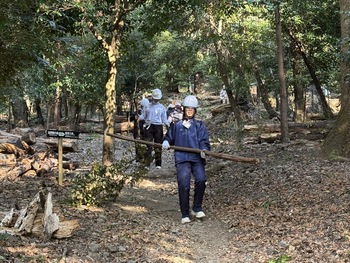 参加者たちは手慣れたようにヘルメットをつけ、腰にはのこぎりを携えて活動場所へ移動しました。